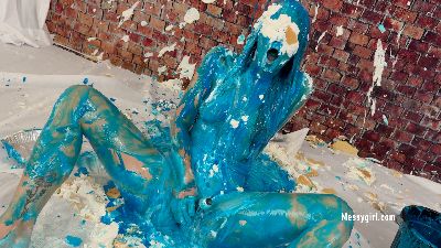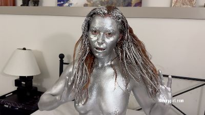 Amber goes all out in this silver paint shoot. She starts off by slowly covering her hot body head to toe. She then dunks her face in the paint and transforms her face into a sloppy silver mess. She even uses a vibrator on her silver pussy.