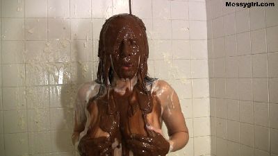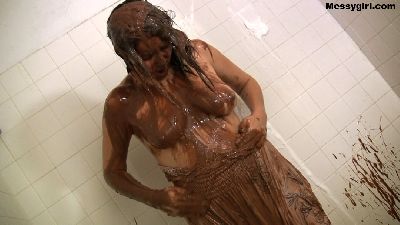 Sexy Hannah Perez starts out by taking a nice warm shower. Then the fun begins when sloppy thick mud is poured over her head.