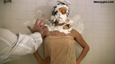 Hannah is attacked after taking a shower with pies and batter.