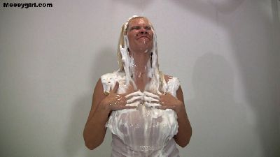 Star covers herself head to toe in sticky marshmallow cream and then washes it off in the shower.