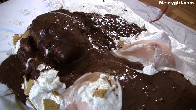 Video of Vicky covered in butter cream and chocolate