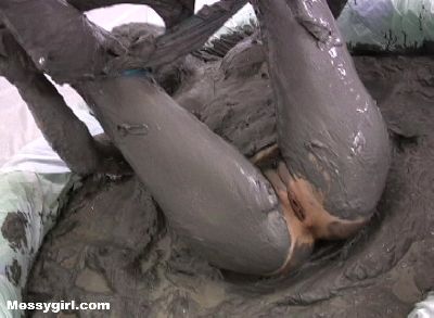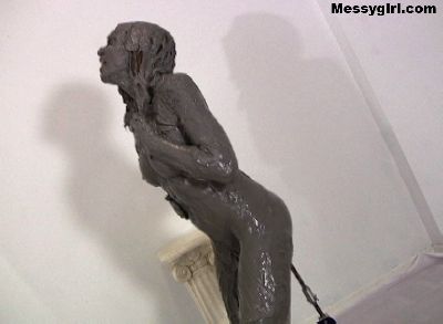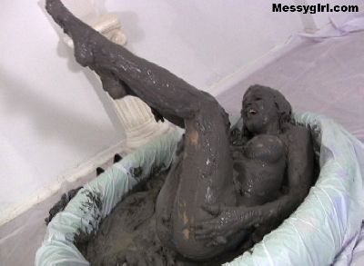 Cute Debbie is transformed from a classy girl wearing a black evening dress and heels to a naughty nude mud girl.