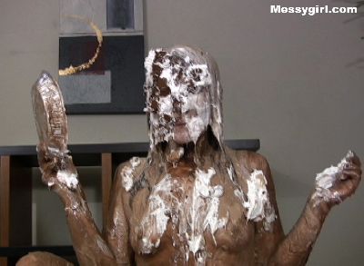 Cute Amy gets into some sexy and messy play with oatmeal, chocolate batter, custard, pies and syrup.