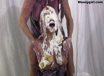 Submissive Debbie is a total mess after Lane covers her in pies, chocolate batter, slime and ice cream.