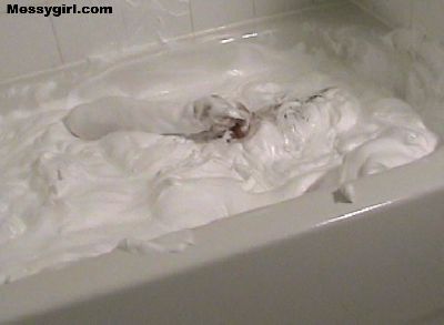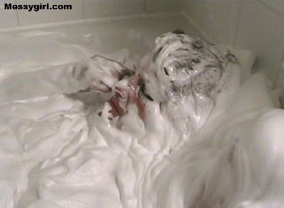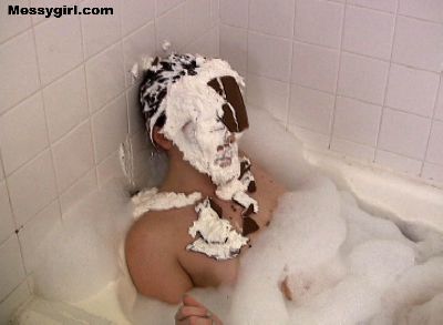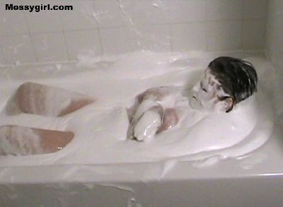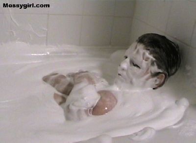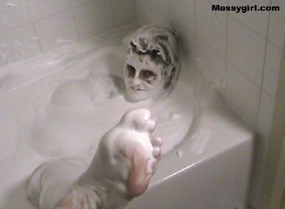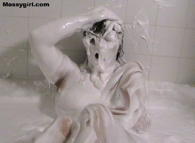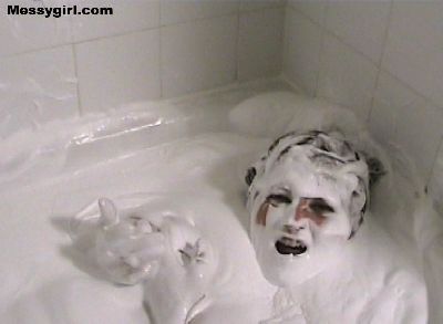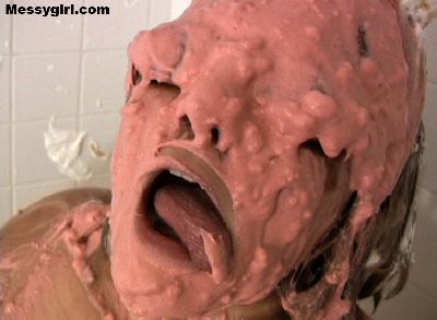 Debbie's relaxing bath gets very messy. Great coverage with pies, chocolate batter and slime.