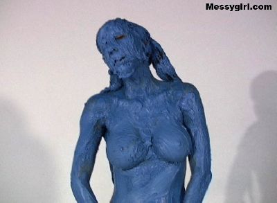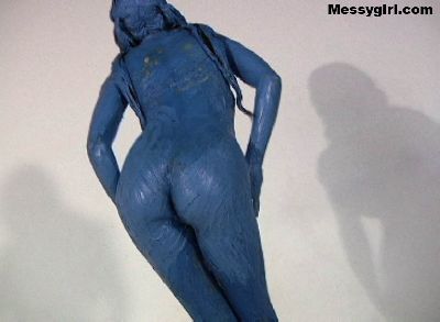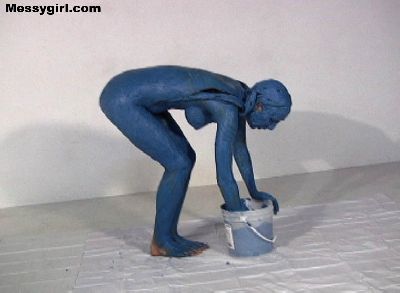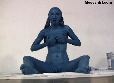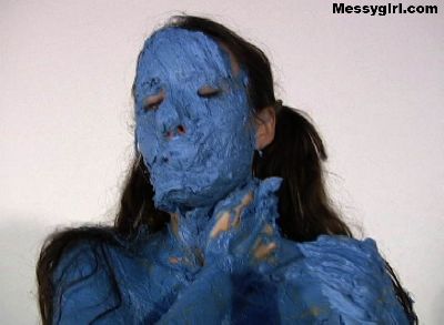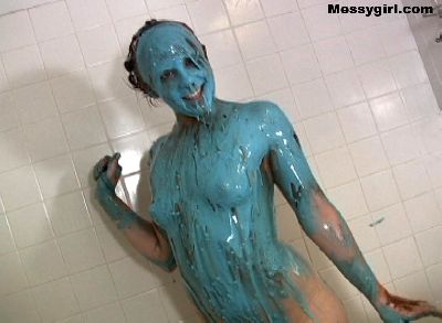 Sexy Lane coats herself in blue butter cream. Then washes it off in the shower.