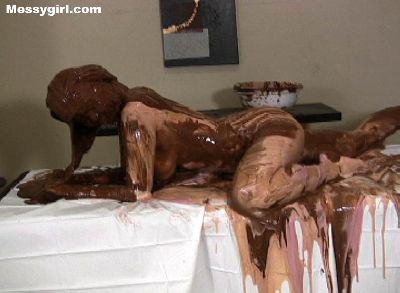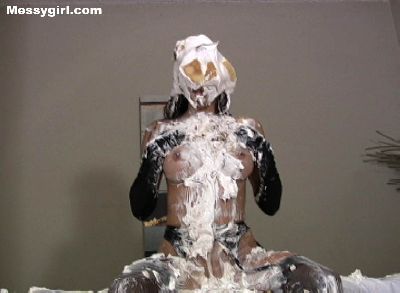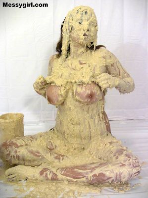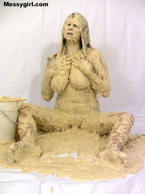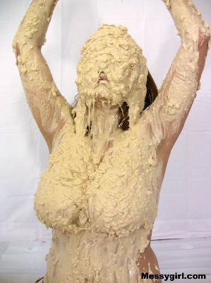 Cute Debbie is transformed into a sexy gooey glop girls. She is coated in a sticky flour and water mix.