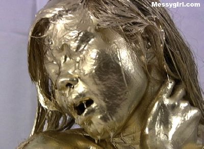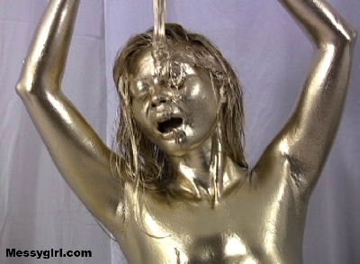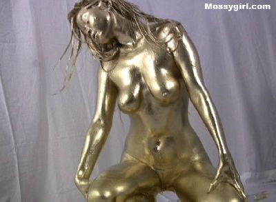 Sexy Asian babe Vivian is covered head to toe in gold paint.