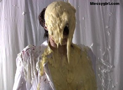 Vicky takes the messygirl shampoo challenge! She endures applesauce, syrup, cheese sauce, beans and a half gallon of mayo!