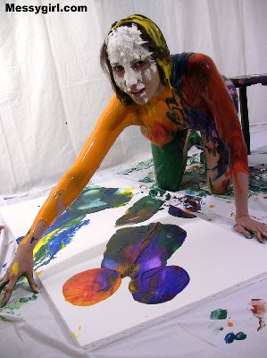 Lane covers her sexy body in paint and then makes her mark on a blank canvas.