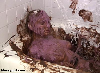 Jasmine takes a bath and then drains the water for a good old fashion sliming with batter, pudding, chocolate and ice cream!