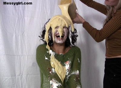 If you are a fan of messy food humiliation, then you will love this video! Poor Linda is covered in applesauce, syrup, cheese sauce, beans, raw eggs, pudding, pies and melted ice cream. She even dunks her head in a bucket of green slop!