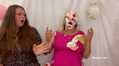 Dakota and Stephanie get into some naughty play time. Dakota sits on Stephanie's face with pies, cake and slime. She then has Stephanie eat her out until she cums.