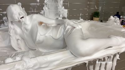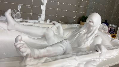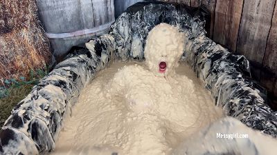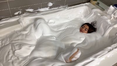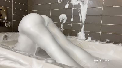 There is no holding back crazy young Tori as she dives right into a bathtub filled with cream slime.