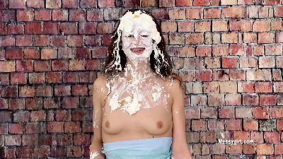 High school senior Tori who is 18 contacted us about becoming a Messygirl. You will enjoy her reactions as she is pied and slimed for the first time. She ends up nude too.