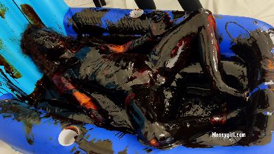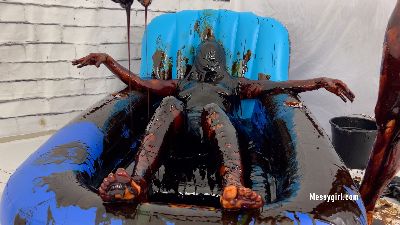 Sexy Sofia and Zoey find creative ways to cover their nude bodies in sticky black treacle.