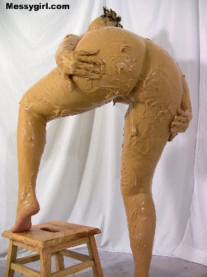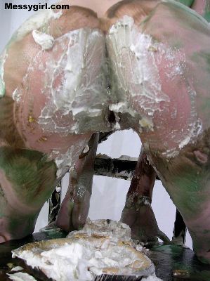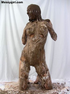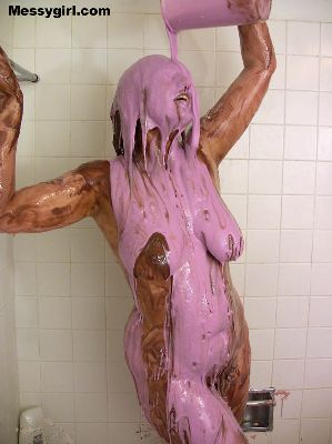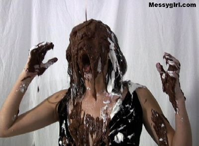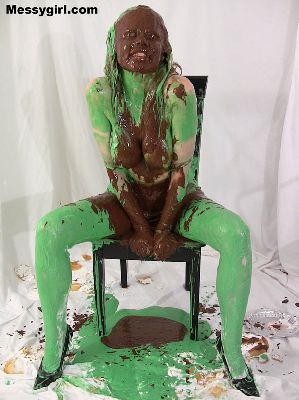 Brittany is in a bikini as she covers herself head to toe in chocolate fudge icing. She then strips nude and has chocolate syrup poured over her head. She mixes it all over her body!