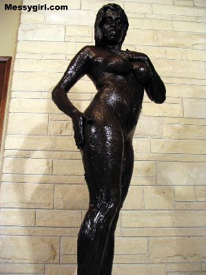 Tall and sexy Jasmine is covered head to toe in black grease. She even covers her long beautiful hair and ends up nude.