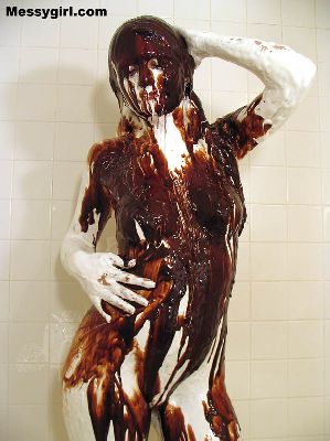 Nikki Sebastian covers herself head to toe in marshmallow cream and then strips out of her bikini. She then tops it all off with chocolate syrup.