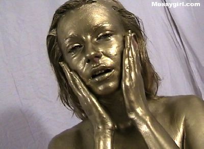 Sexy Danielle covers herself head to toe in gold paint. Every inch of her nude body gets a nice gold coating.