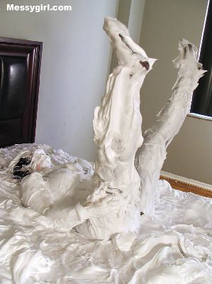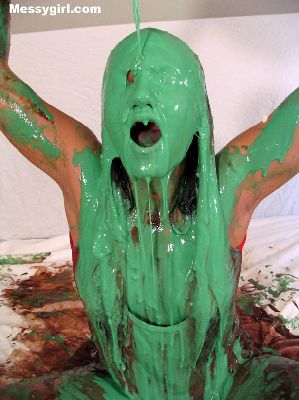 Bondage model Derek SynKlaire wanted to know what it would be like to get head to toe messy. So she contacted us and we gave her the full messygirl treatment. She loved it!
